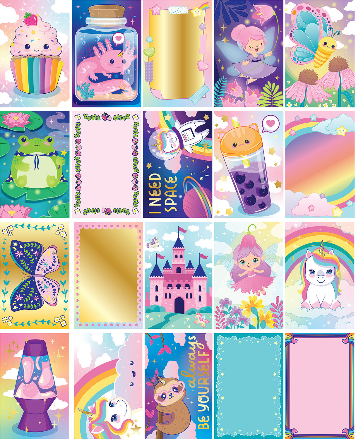 Scratch your papers to reveal fun 20 designs in foil and rainbow. Includes 20 sheets and 2 scratching tools.