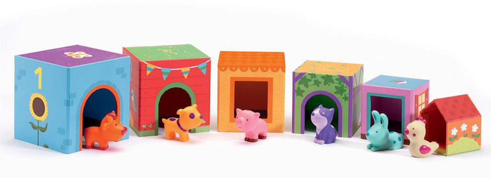 Build a beautiful farm with this fibre-board blocks and tower set, includes 6 nesting boxes and 6 whimsical farm animals Beautifully decorated in a country farm theme (some sides with numbers), these boxes can stack into a tower or nest together, and each animal fits inside Helps build motor skills. sequencing, storytelling and role-playing. Every DJECO product is made from the highest quality materials and is completely non-toxic; meets and exceeds all US and European safety standards.