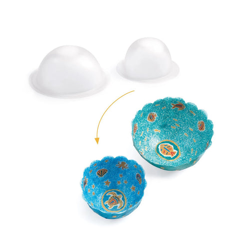 A comprehensive creative kit to make 2 decorative paper bowls using only paper and glue. Simply glue the big confetti onto the moulds using the liquid glue, first on the inside and then on the outside of the bowl, leave to dry, and unmould them. Then, they’re ready to use!