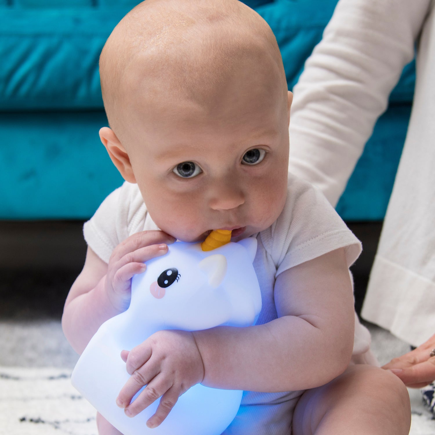Give your sleep buddy a tap to toggle through 9 soothing, glowing colors. Rechargeable, travel-friendly and safe because the high-quality silicone stays cool. Night Night!