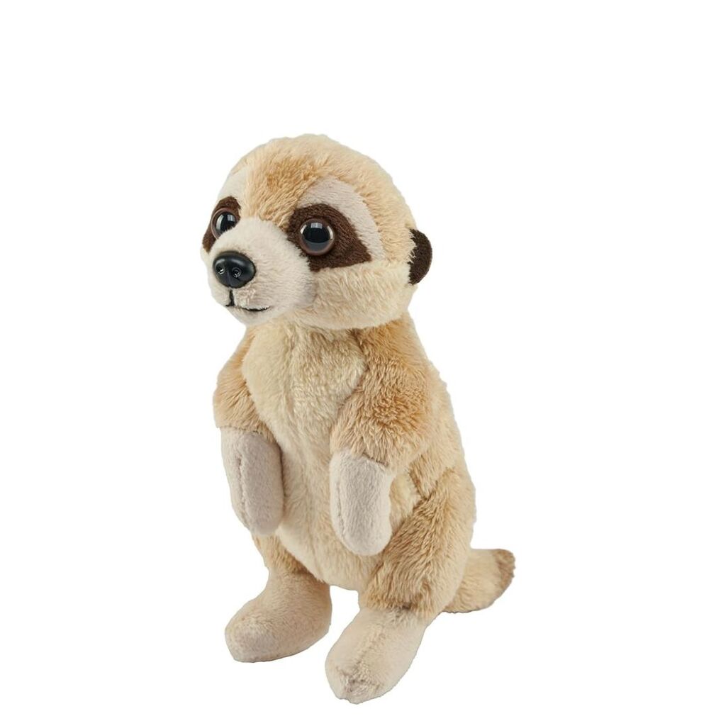 Join the playful world of the desert with Pocketkins Eco Meerkat. Capturing the essence and alertness of the inquisitive meerkat, this 5-inch plush stands as a beacon of nature's whimsy. Woven from recycled materials, it promises the softness of sun-warmed sands, making it a beloved companion for both children and adults. Embrace the spirit of sustainability and adventure with this delightful, bead-free rendition of the meerkat. The fill of each animal is made of recycled water bottles. Each bottle is shredded, sanitized, melted then spun into a soft material.
