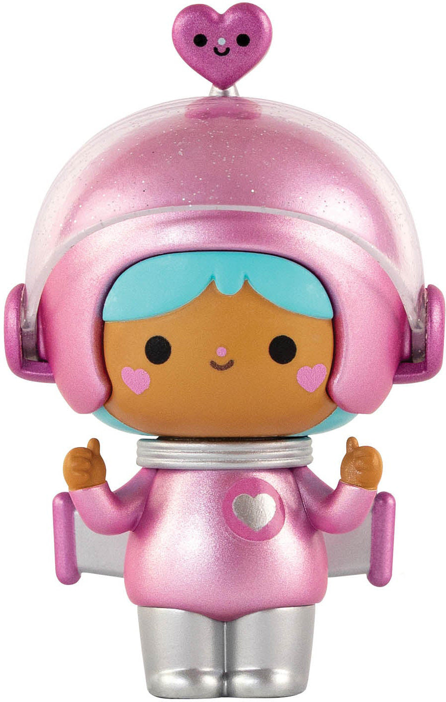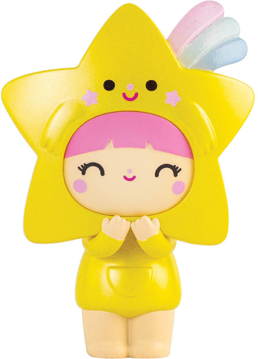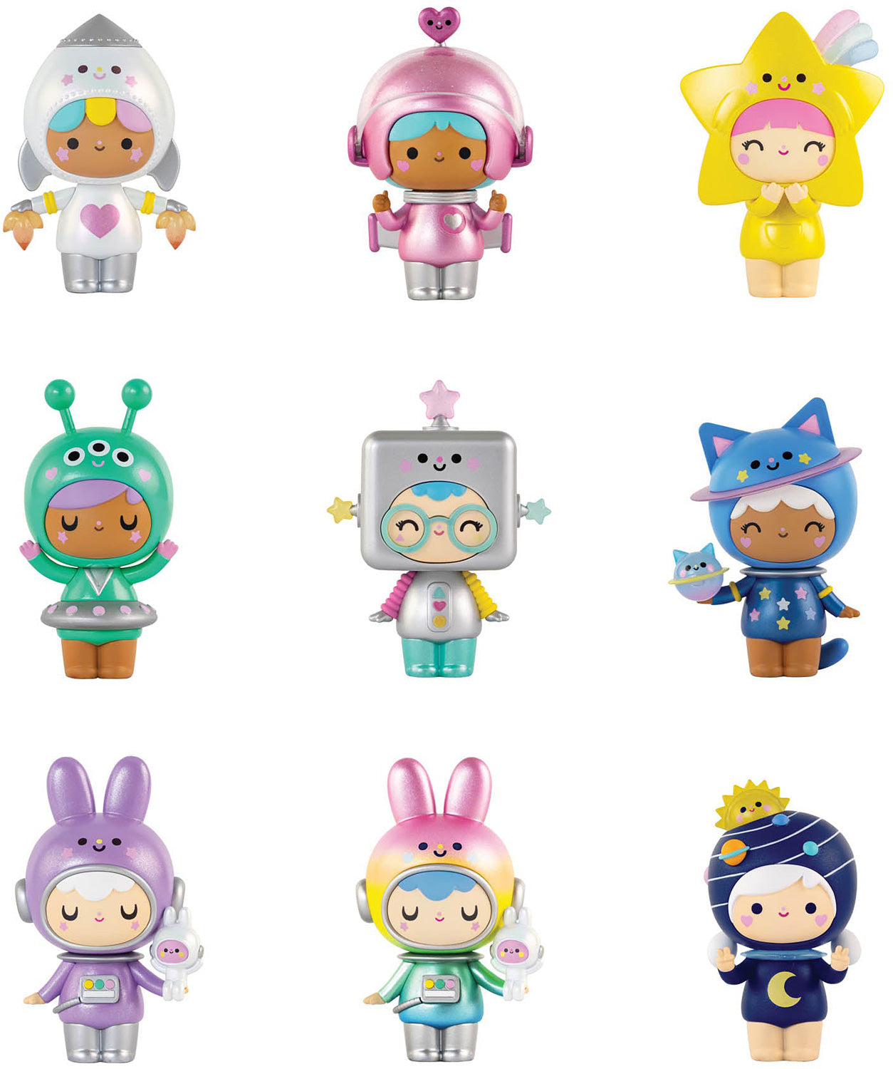 Welcome to the out-of-this-world Momiji universe, where anything is possible! You could meet extraterrestrial friends, explore unknown galaxies, and reach for the twinkliest of stars. Unbox little kindnesses: inside the base of each of these whimsical 3" vinyl Momiji dolls is a tiny folded card with a message, and a space to write your own note. Collect each of the 8 blind box styles: Cosmic Kitty, Goldie, Doobie, Nova, Wonder, Luna Scout, Digi Della, Astro Bunnie, and a rare ombre rainbow version of Astro Bunnie (odds 1:64). Each blind box sold separately.