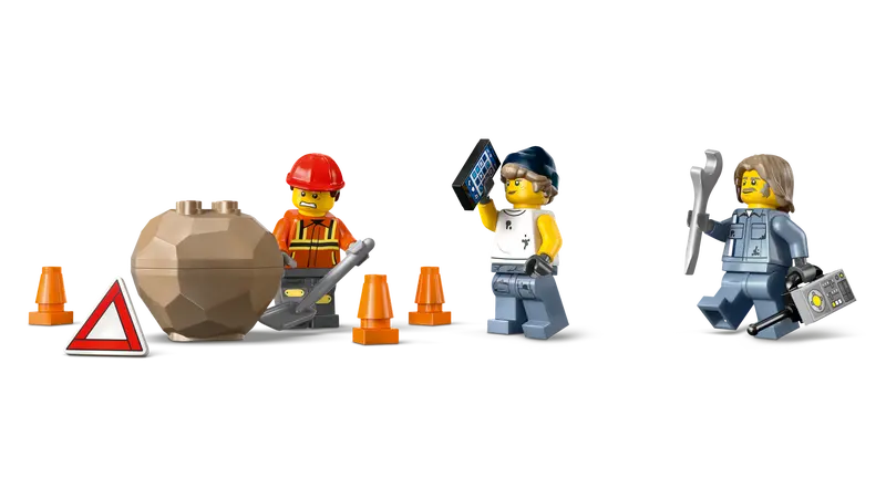 - LEGO minifigure accessories ÃÂâ Includes 4 traffic cones, 2 telephones, a walkie-talkie, wrench, shovel and a warning triangle