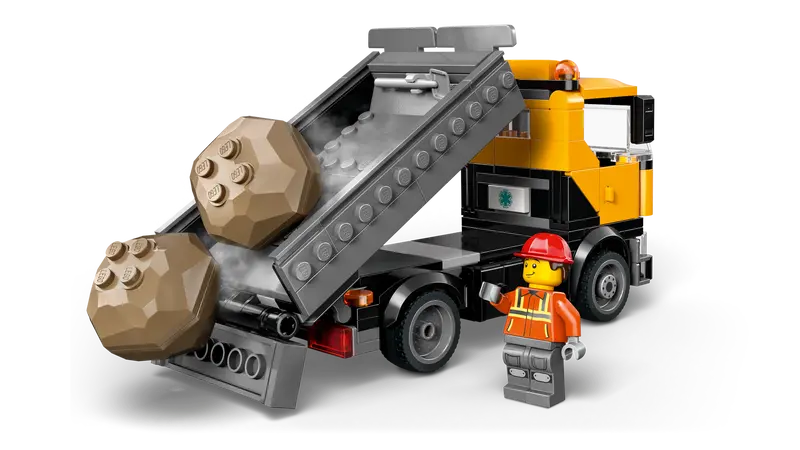 - Whats in the box? ÃÂâ This vehicle rescue playset includes everything kids need to build a toy rotator tow truck and a dump truck, plus 2 toy boulders, a restraining chain and 3 minifigures