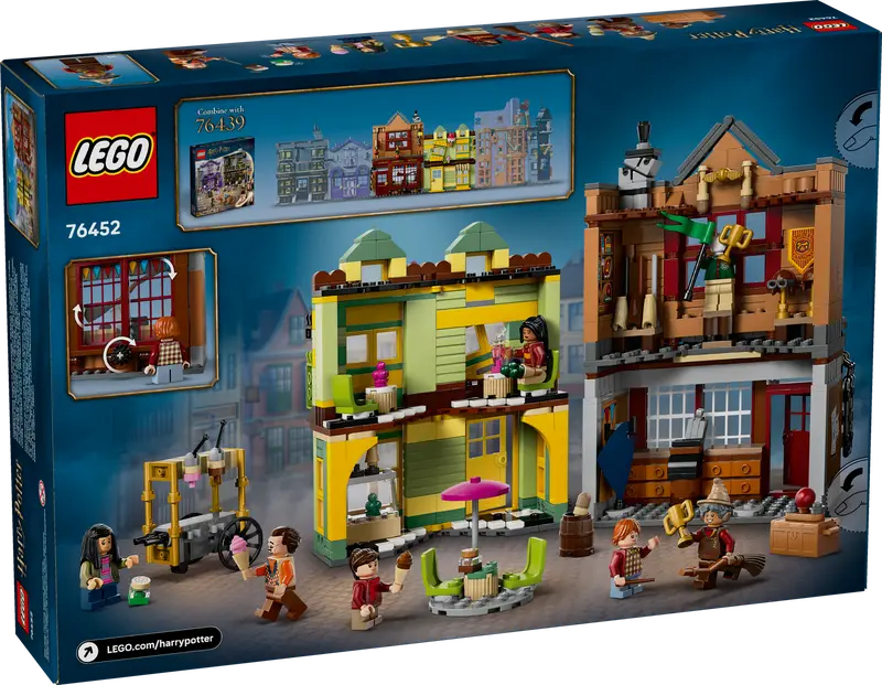 Take a trip to Quality Quidditch Supplies and Florean Fortescues Ice Cream Parlour for magical fantasy adventures with this LEGO Harry Potter Diagon Alley toy shop playset for kids (76452). A wizard birthday present or holiday gift toy for boys, girls and any Harry Potter fan aged 8 and up, it features detailed LEGO brick models of 2 iconic Diagon Alley shops, plus 6 minifigures. Quality Quidditch Supplies features a floating broomstick function and is packed with Quidditch equipment to inspire creative play. The ice cream parlour opens up for easy play and has seating inside and out, plus a retro-style ice cream stand in the street.