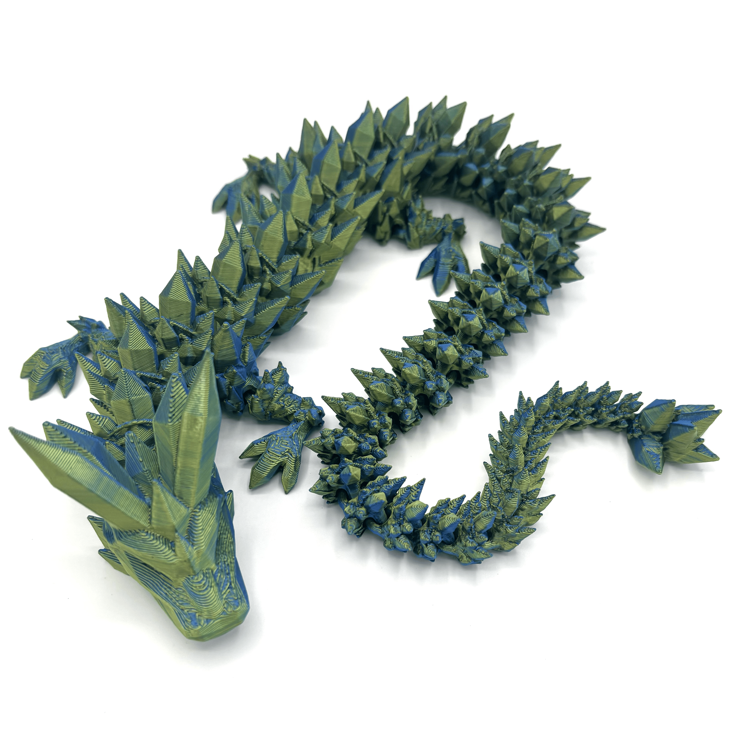 3-D printed Medium Dragons measure between 12" and 18" with most ranging in sizes from 13" to 16" and come in a variety of designs and colors. Selection includes winged and wingless dragons. Dragon selected at random for online orders.
