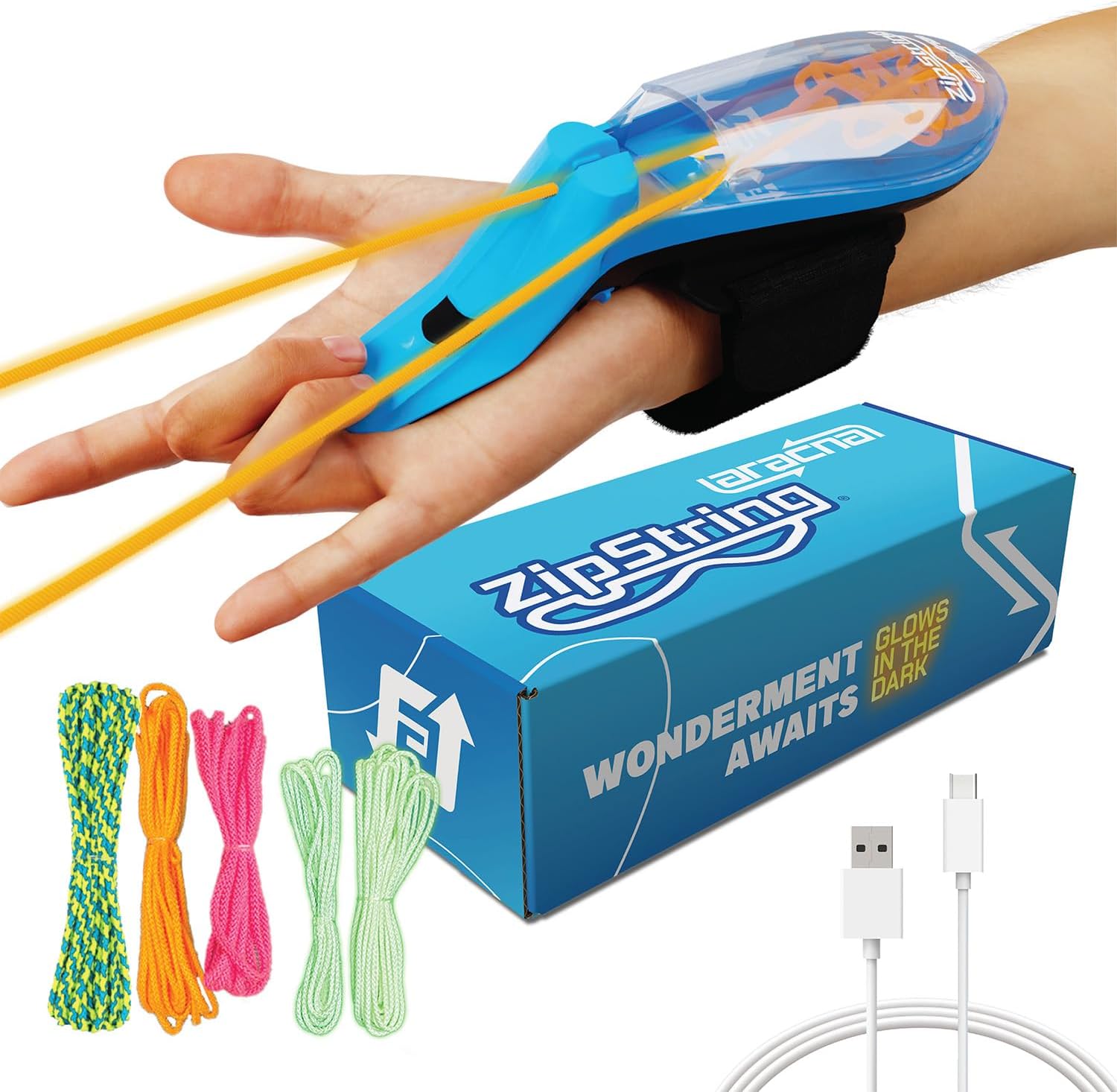 ZipString Aracna shoots and retracts a string loop at over 35 mph with the touch of a button. Its physics-defying movement and glow-in-the-dark technology unlock that superhero feeling we all have inside.