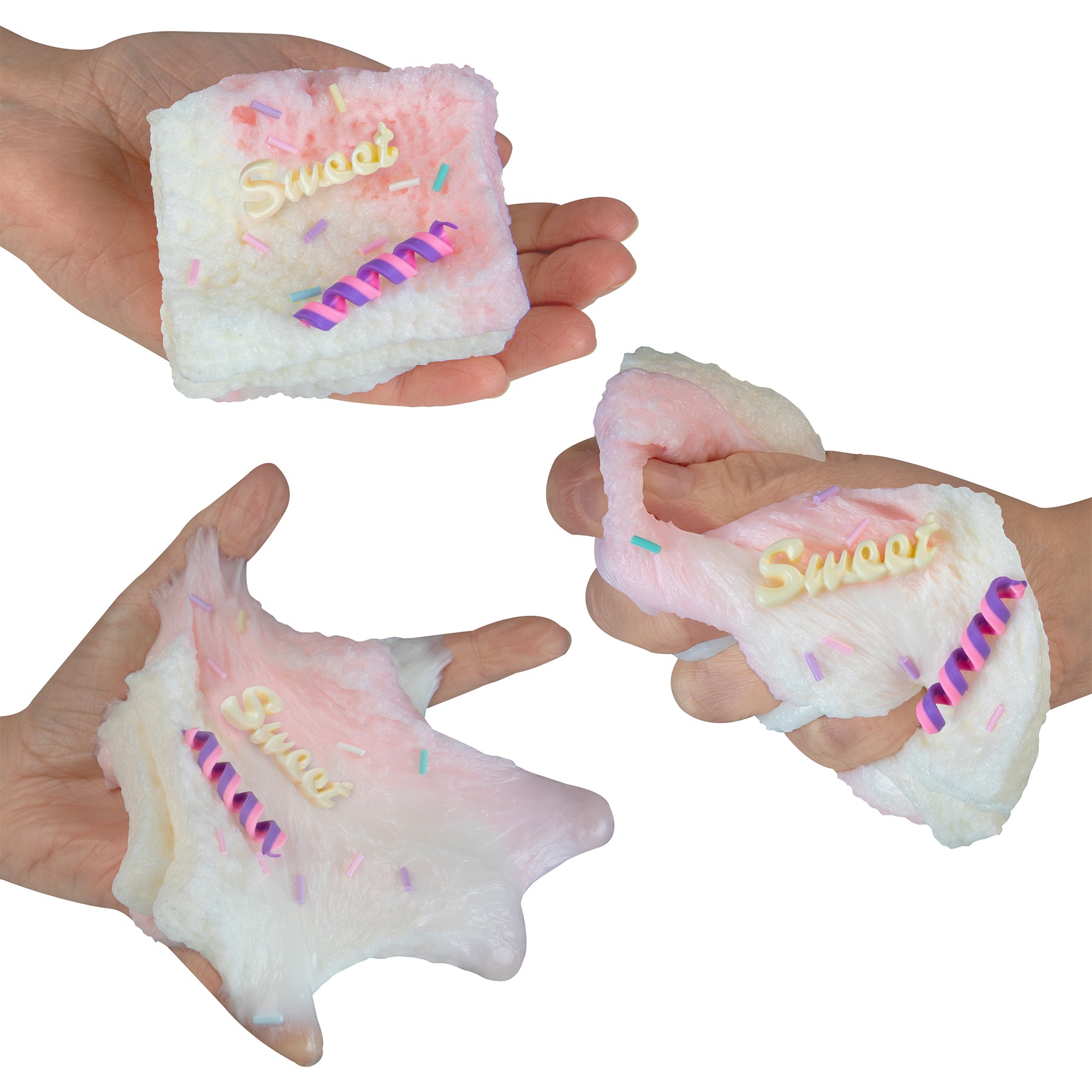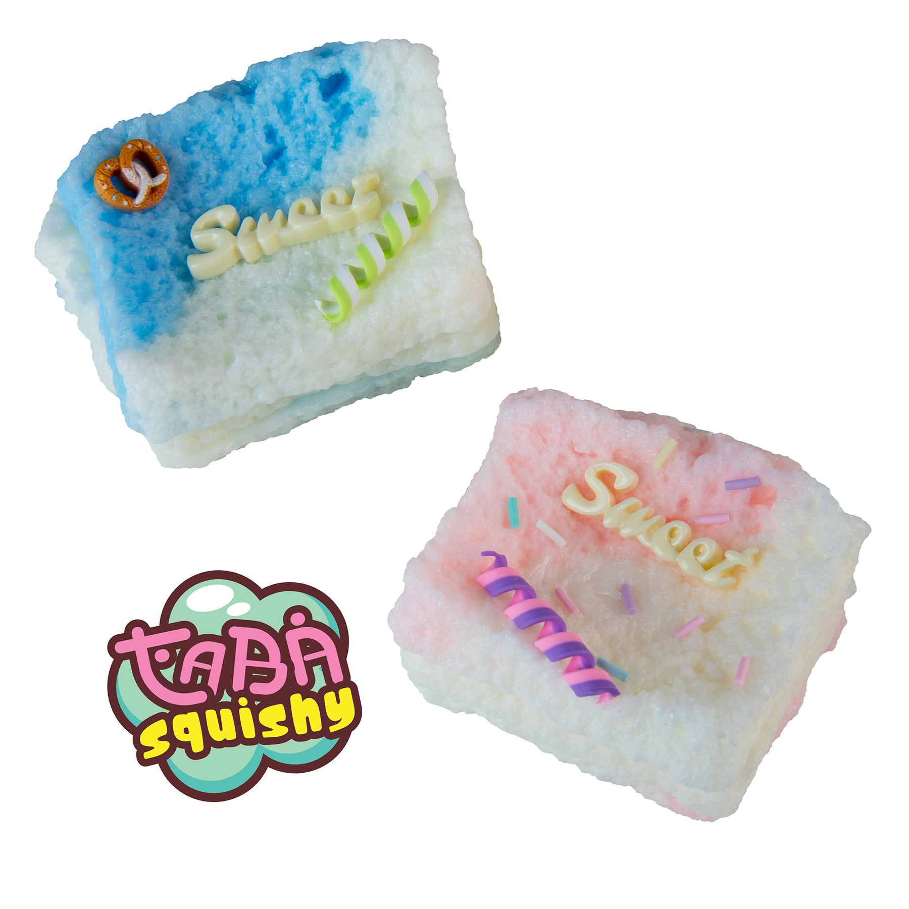 Get ready to squish, squeeze, and smile with the most deliciously adorable squishies around! The Taba-licious Yummies look good enough to eat but are made for stress-busting fun! These soft, pastel treats come in dreamy colors like cotton candy pink, frosting blue, and marshmallow white, topped with pretend candy curls, sprinkles, and even a cute little pretzel! Each piece is stamped with the word œSweet” because, let’s face it — that'™s exactly what they are.