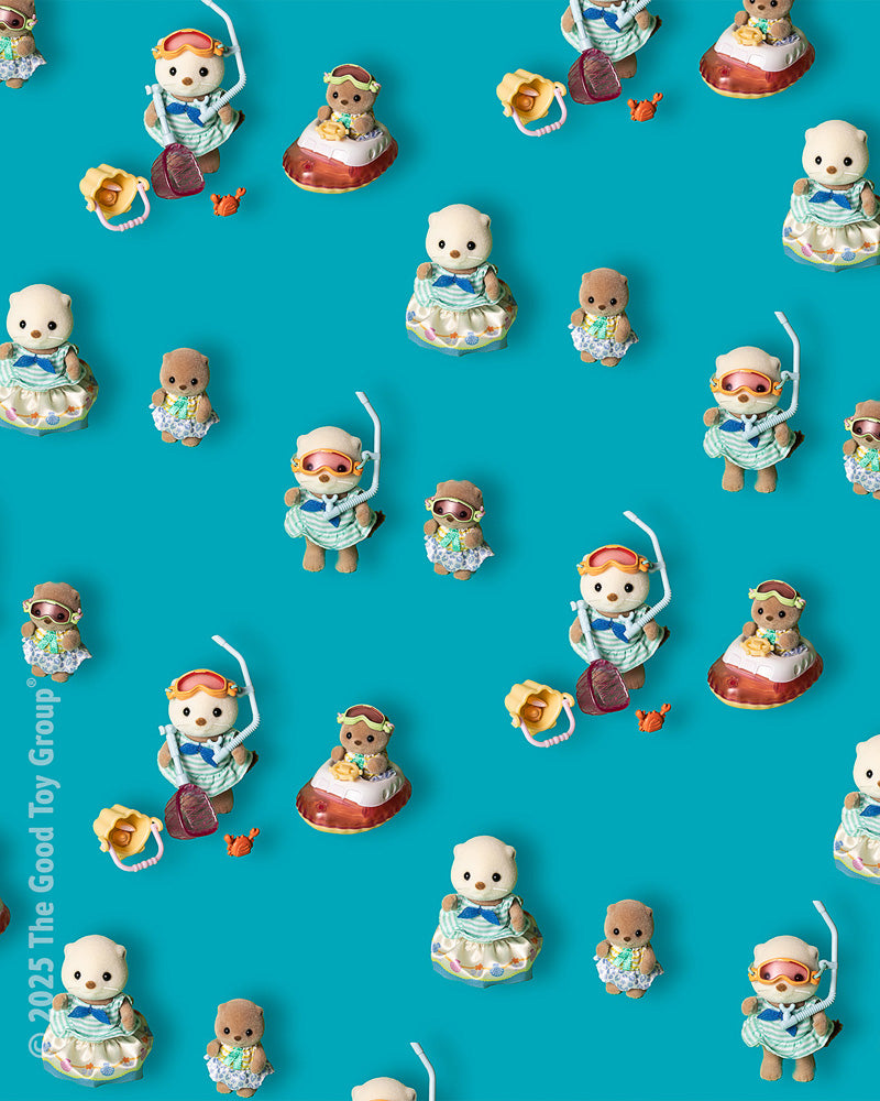 Imaginations soar in the pretend play world of Calico Critters. Get started or expand your collection with this set of two soft, flocked sea otters in removable seaside outfits. They are ready for a summer day of pretend play by the ocean! Includes Sea Otter girl and baby, 2 pairs of goggles they can wear (1 with a snorkel), 4 beach toys, sand bucket, net, and a floatie boat that baby sister can ride on. Some critters and accessories sold separately.