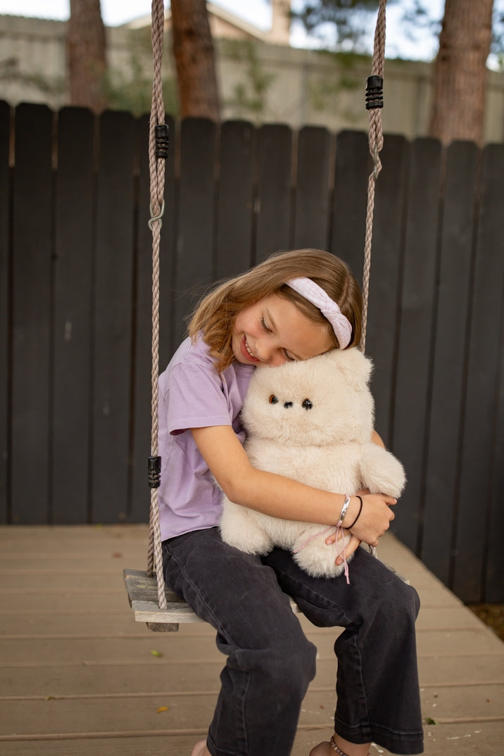 Introducing the ultimate cuddle companion with this irresistibly chubby bear plush featuring oversized proportions and signature pudge-hug design. The Chunka Dunkas Bear showcases ultra-soft cream-colored plush, an adorably rotund body that's nearly as wide as it's tall, sweet sculpted facial features with tucked-in eyes, and that squishy belly everyone wants to squeeze. This chunky bear taps into the trending "chonky" animal aesthetic dominating social media while delivering premium BHTB construction and quality. The substantial 13-inch size creates an impressive presence while remaining perfectly portable.