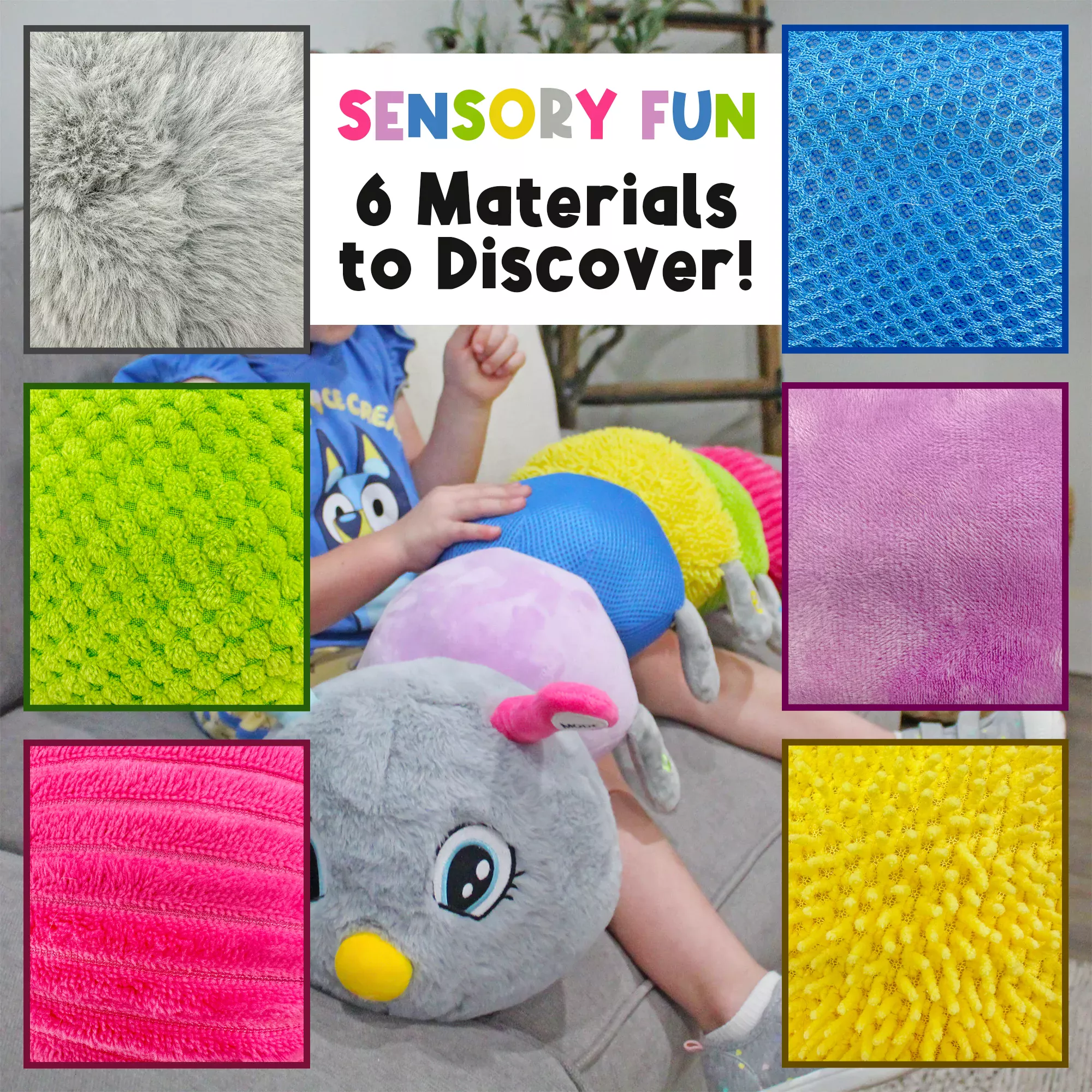 Quiggly the Sensory Octopus is designed to provide kids with a unique sensory discovery experience. This high quality plush is designed with various sensory materials that will help stimulate your child's sensory needs. Each tentacle is specially designed with a different sensory fabric material and also has a marble in each leg for kids that love to fidget. They will find it fun and relaxing to move the marbles up and down each of the tentacles while helping them stay calm and focused. Quiggly is designed with high quality fabric, is lightly weighted and is machine washable.