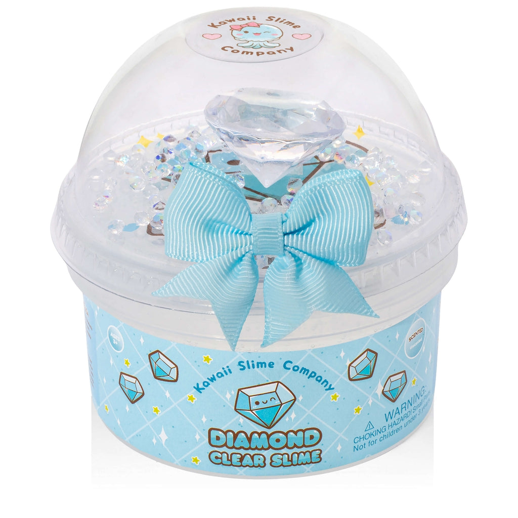 Diamond clear is so clear you'll think its water! It has a thick yet stretchy slime formula that is great for poking or bubble pops. Each diamond clear comes with the large, beautiful crystal shown plus some fun additional iridescent rhinestones as well! The combination together is so breathtaking you will love playing with this slime or displaying it on your shelf.