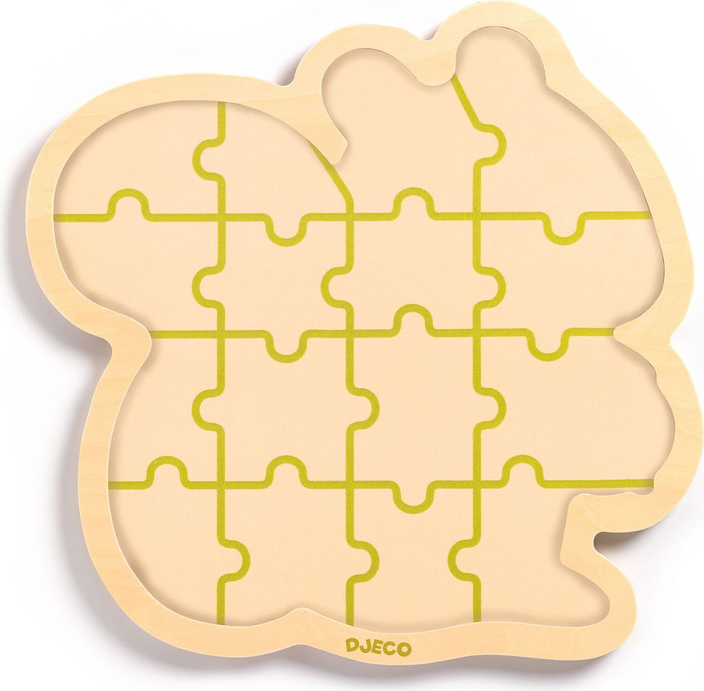 With pieces that fit firmly into the wooden frame and helpful outlines on the base, this puzzle is perfect for children.