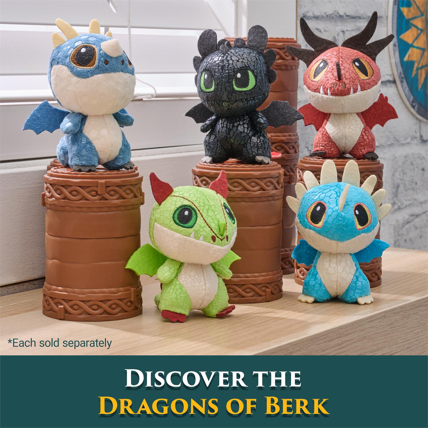 Take flight with your favorite dragons! Unlock the Viking totem to unbox one of five styles- Toothless, the Deadly Nadder, the Monstrous Nightmare, the Gronckle, and the Terrible Terror. Each adorable 3-inch dragon stuffed animal features movie-accurate details, coming together as soft plush with shiny scales, felt claws and wings, and expressive embroidered eyes. Each also features adorably short arms, plump bodies, and long tails that keep them standing upright and balanced for display in any collection. These cuddly pals will transport you to the Isle of Berk to recreate your favorite scenes from the movie! Collect all five and bring the adventures to life! Surface washable; spot-clean only. Appropriate for ages 4 and up.