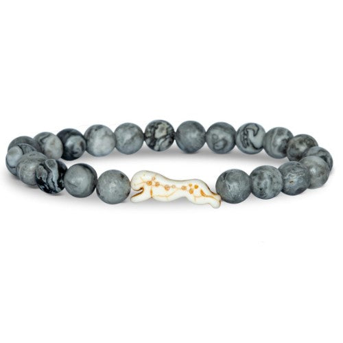 Capture the sleek power of the wild with the Fahlo Cheetah Bracelet in Cloudburst. Featuring stormy gray-toned beads and a carved cheetah centerpiece, this bracelet symbolizes agility, strength, and bold adventure. A perfect piece for those who move with purpose and speed.