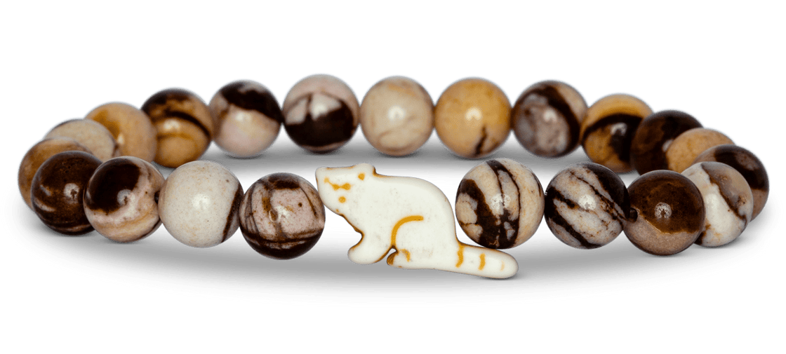 The Fahlo Red Panda Himalaya Stone Bracelet features warm, marbled beads in rich shades of brown, cream, and golden tan, reminiscent of the Himalayan landscape. At its center, a charming red panda charm symbolizes playfulness and balance in nature. Each bracelet supports wildlife conservation, making it both stylish and meaningful.