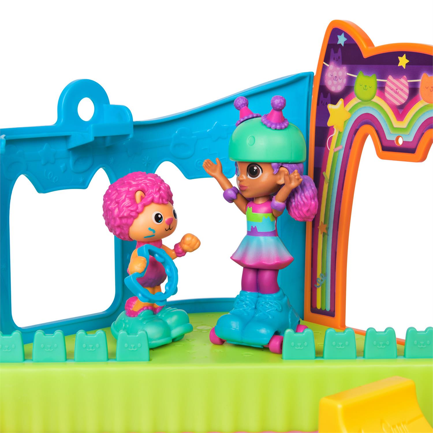 Step into the magical world of Gabby`s Dollhouse with Gabby`s Party Room Playset! This set includes exclusive 4-inch Skater Gabby and Skater Marty the Party Cat toy figures with working skates! Decorate the Party Room with dollhouse accessories & furniture, then enjoy sensory play with fidget toys on the Party Room wall! For even more fun, attach the Party Room to Gabby`s Dollhouse to raise the dollhouse up to 4-stories-tall and then access the party room with the doll house cat-a-vator! Gabby`s Dollhouse toys for girls & boys are great gifts for kids who are fans of the hit Netflix series and enjoy building pretend play doll house worlds.