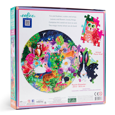 Take time to unwind as you piece together this 500 Piece Round Garden Sanctuary Puzzle. Exquisitely illustrated by Jennifer Orkin Lewis, this colorful nighttime gardenscape invites mindfulness and wonder as you reveal delightful flora and fauna beneath a starlit sky.
