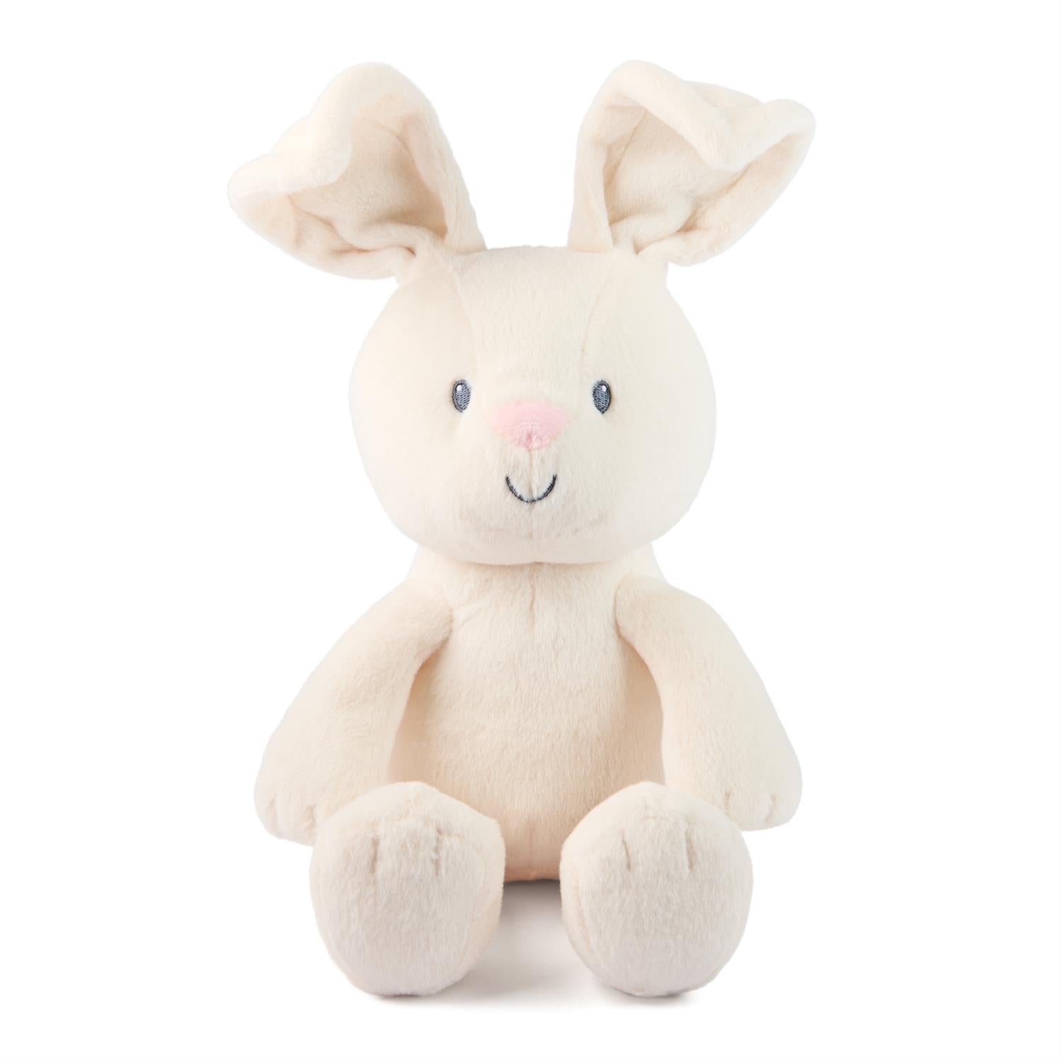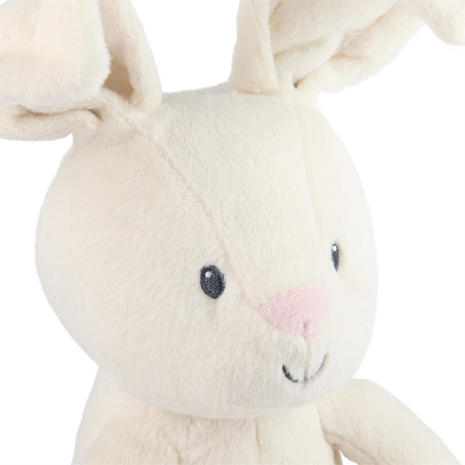 Flora is here in an all-new format! This classic award-winning plush bunny is here in a smaller, travel-friendly size with a simpler squeeze-and-play feature that everyone can use to play peek-a-boo with baby. Simply press her tummy with a gentle squeeze and her ears flop downward, covering her eyes to hide and leaving you in control of the game. Her long ears then pop back up as soon as you release the pressure, letting you decide when the surprise occurs. Flora`s new 7 size and floppy limbs enable her to sit upright for display or let her legs dangle down playfully, making an adorable baby shower gift and cuddly soft toy. This innovative baby toy was also made thoughtfully, with the whole family in mind: with only minimal pressure needed to press her tummy, everyone can play comfortably and easily, from siblings all the way to grandma!