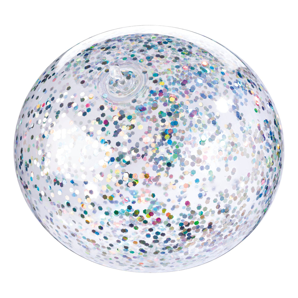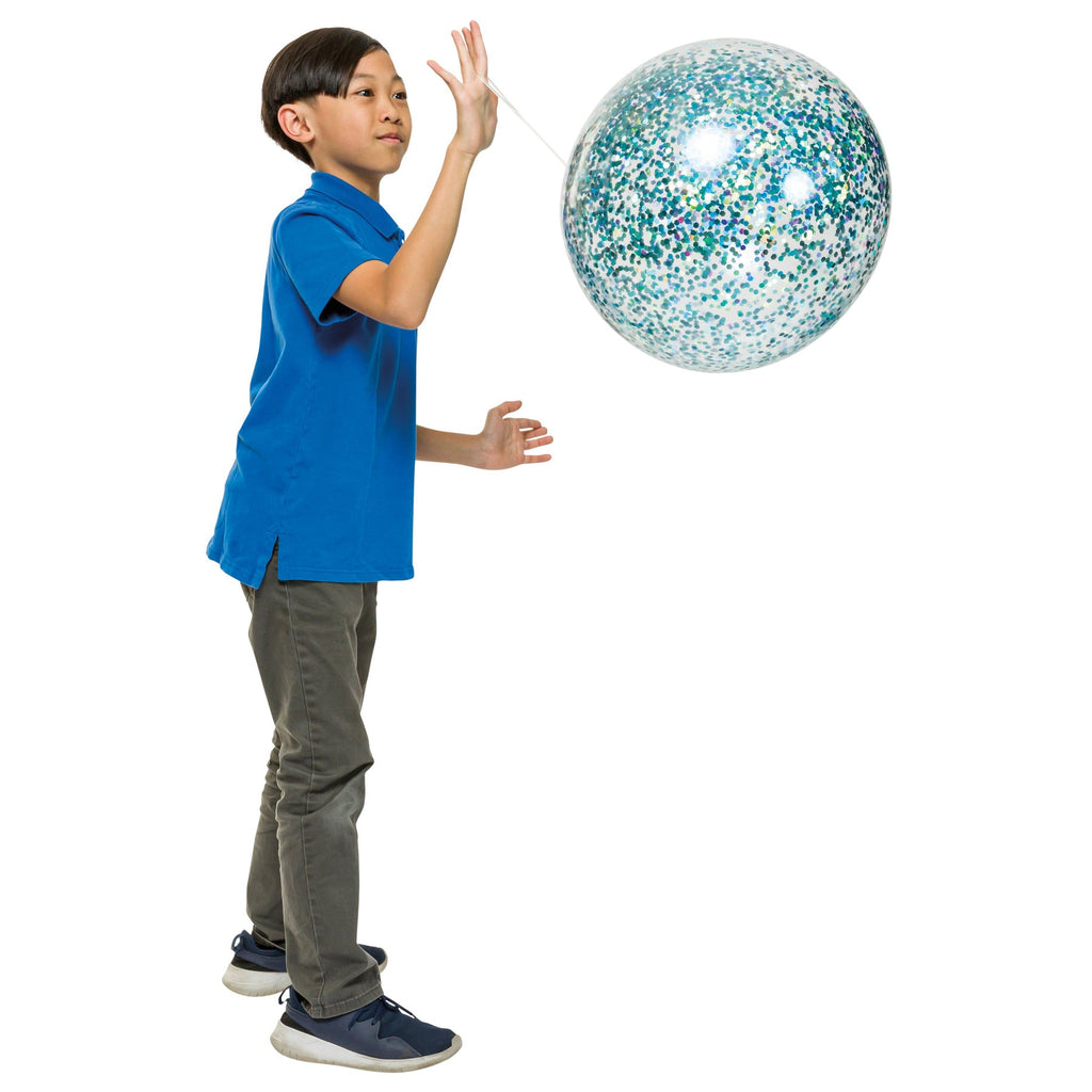 Each balloon is made of clear latex and filled with a generous amount of sparkling glitter flecks. Balloons can expand up to 22 inches and include a finger-loop lanyard for bouncing. Each package includes 1 colored glitter punch balloon and 1 nozzle for inflation. Available in bright red, light blue, or silver.