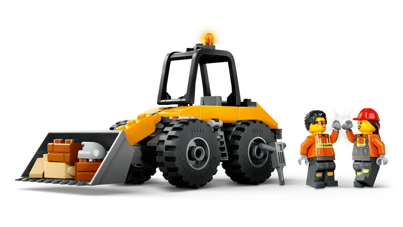 - Whats in the box? ÃÂÃÂ This construction site toy includes a buildable toy wheel loader, driver and worker minifigures, a roadwork sign, traffic cones and a toy jackhammer