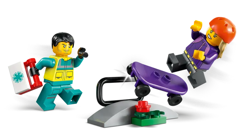 - Whats in the box? ÃÂÃÂ Includes everything kids need to build a toy ambulance, plus a skateramp setting and skateboarder and paramedic minifigures for role play
