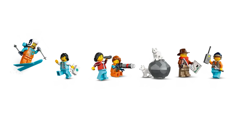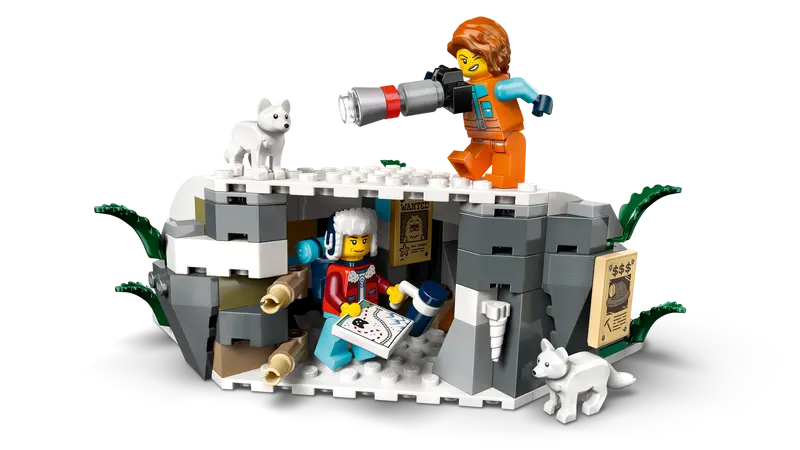 - Features and functions ÃÂâ Kids can drive the toy train through the mountain tunnel to activate a rockfall function and send minifigures down a zip line that connects the mountain to the Arctic outpost