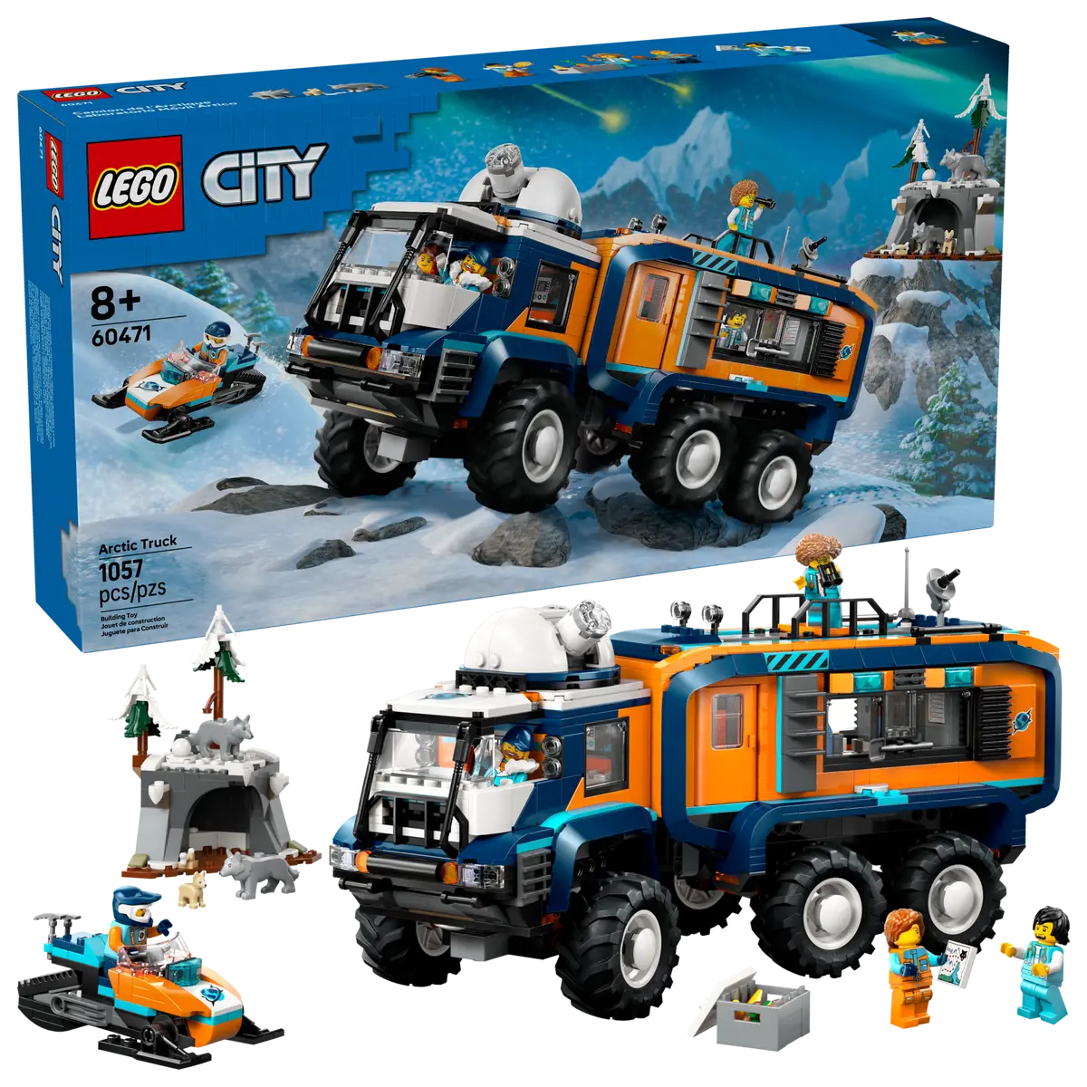• What in the box? – Includes a toy exploration truck, snowmobile and Arctic cave scene, plus driver, photographer, scientist, medic and mechanic minifigures and 3 Arctic wolf animal figures