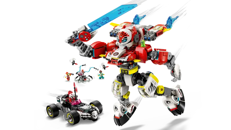 The set offers 2 exciting building options, and kids will have lots of fun building a red gaming aircraft before rebuilding it as a tiger mech and hot rod car or as a speedy racing car and robot creature. The tiger mech and robot creature are posable and both building modes are loaded with cool features. The race car playset also includes Cooper, Zero and a dreamer minifigure, plus Z-Blob, a Cyber Brain Spider and 2 Cyberlings, who bring the action to life and spark imaginative role play.