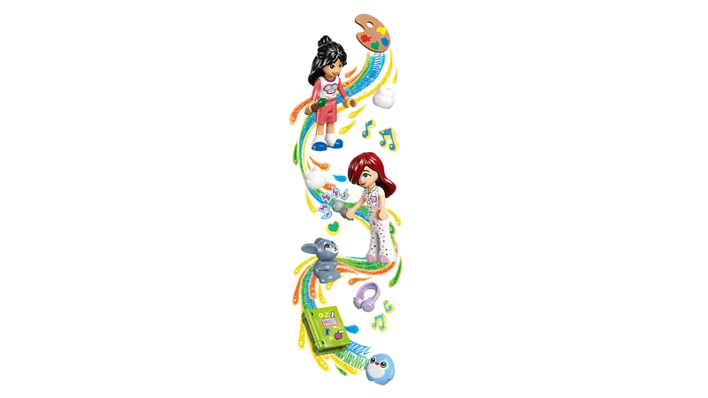 Let kids aged 6 and up create their own friendship stories with the LEGOÃ Friends Paisleys Room (42647) set for girls, boys and any young fan of music and art. The set is packed with friendship moments as art-lover Liann joins musician Paisley for a day of creativity. The set comes with 2 LEGO Friends minidolls, a pet bunny figure and a special plushie-style LEGO piece.