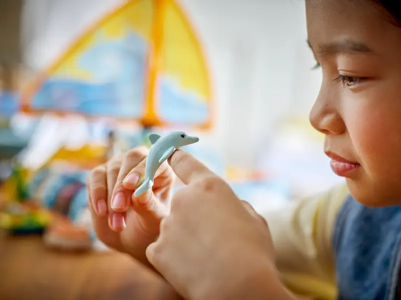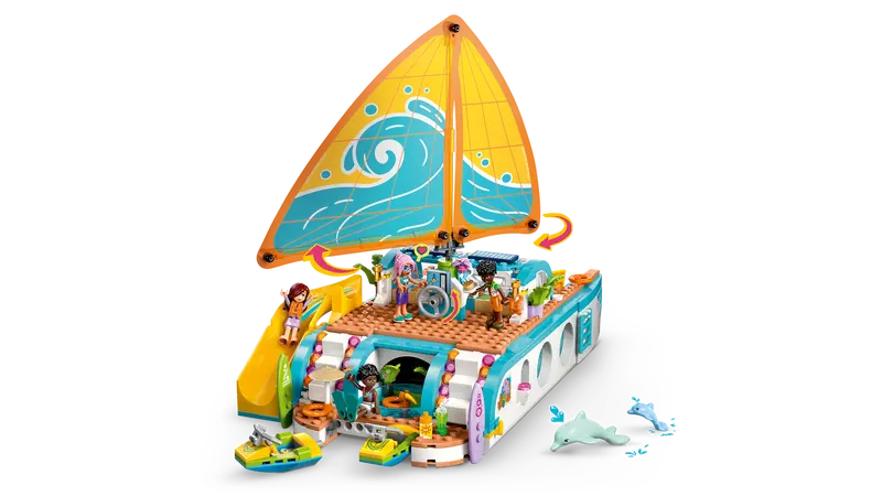 - A boat playset with lots of features Kids can build the boat, then have fun creating their own stories for the characters as the friends play and relax on the boat and spot dolphins