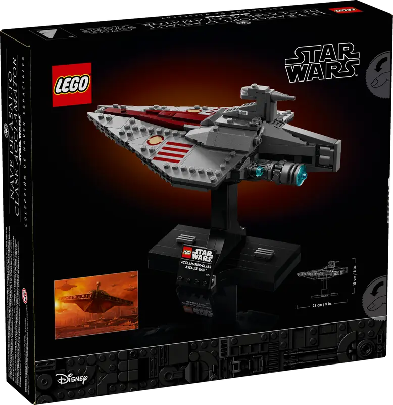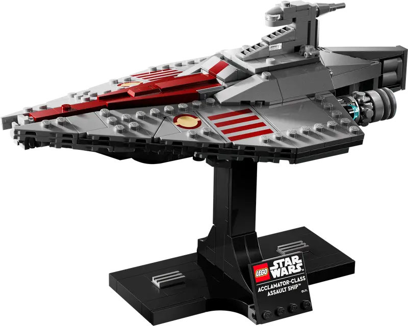 - Build-and-display starship model Relive dramatic Battle of Geonosis scenes as you build a mid-scale LEGO Star Wars recreation of an Acclamator-Class Assault Ship