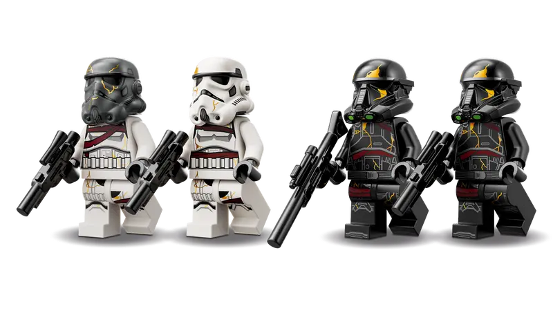 Let kids build their own platoon and transport them into LEGO Star Wars: Ahsoka⢠battles with the Death Trooper & Night Trooper Battle Pack (75412). A cool small gift for boys, girls and any fans aged 6 years old and up, the set includes a dropship building toy with space for 4 LEGO minifigures in the back, 2 stud shooters and a LEGO minifigure cockpit with a removable canopy. The 4 included LEGO Star Wars⢠minifigures â 2 Death Troopers and 2 Night Troopers â each have a blaster that can be attached next to them in the back of the dropship, ready for pretend-play battles.