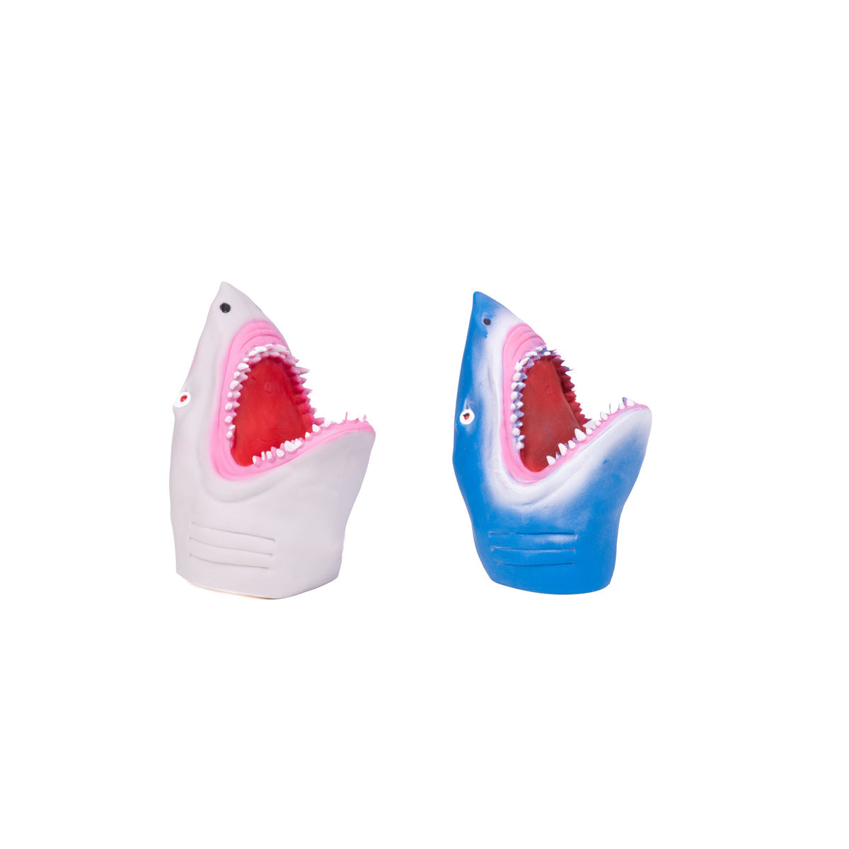 Enhance story time or bathtime by transforming your hand into a shark! Toysmith’s Shark Hand Puppets are soft and squishy for a comfortable fit. The shark details are incredible, especially the teeth, but they’re soft, too, so this shark can’t bite. Available in grey or blue. Each shark has red eyes and a red mouth with pink gums around the white teeth.