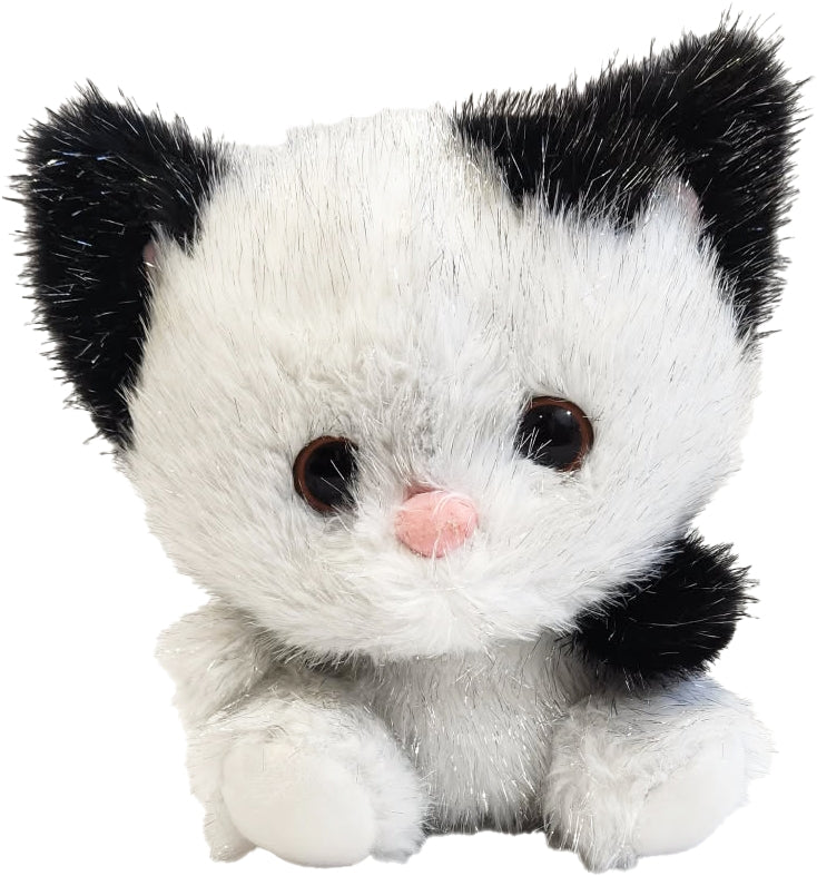 Shimmers Kitten brings cat plush to a new level of luxury with revolutionary shimmer technology and premium construction. This charming 8-10 inch white kitten with black accent markings features Beverly Hills Teddy Bear's exclusive soft silver thread plush that creates gentle sparkle without scratchy metallic fibers. People love this adorable seated kitten design for its broad appeal across demographics, from young children to cat enthusiasts and plush collectors. The sweet pink nose and expressive eyes make this stuffed animal kitten an instant favorite in gift shops, toy stores, and specialty boutiques.