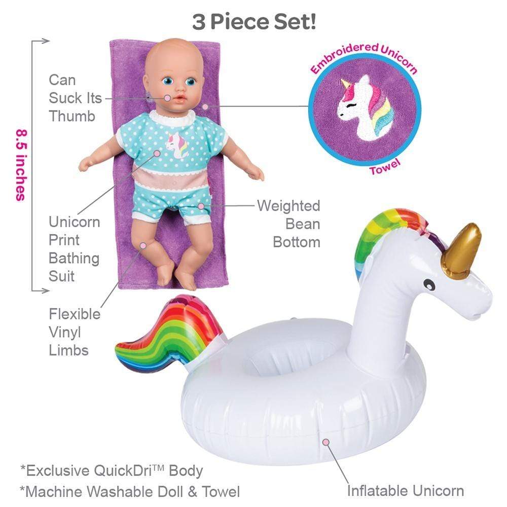 Adora's SplashTime Magical Unicorn Baby Doll is soft and cuddly, and her soft skin smells like real baby powder! Other lifelike features include her pair of round blue eyes and her thumb-sucking abilities, which are sure to amaze your little one.