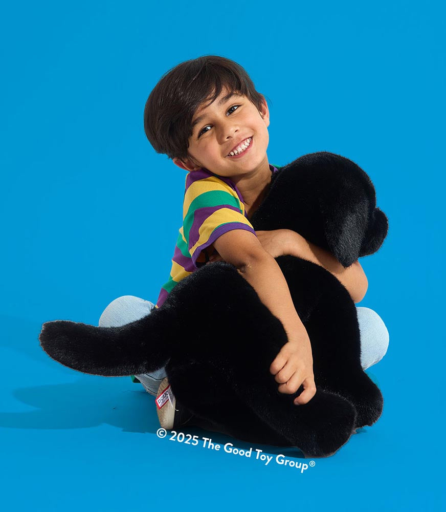 Made from high-quality and sturdy plush materials, Spruce's deep black fur, soft floppy ears, and expressive eyes capture the essence of a loyal black dog.