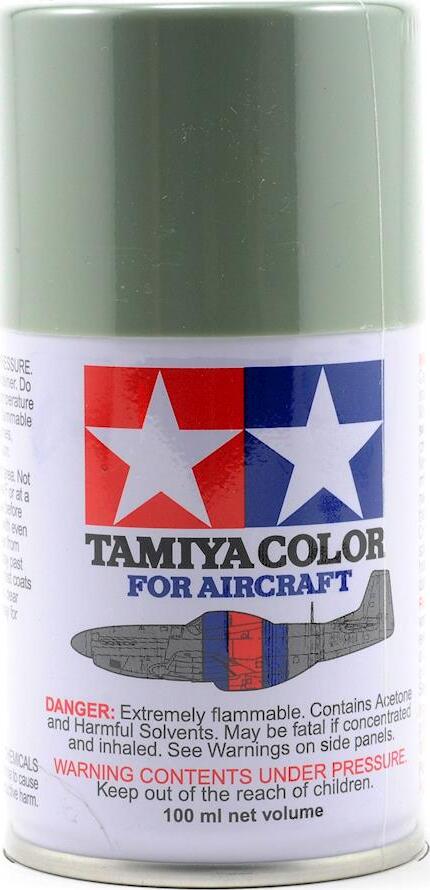 Tamiya Color AS-29 Gray Green Spray Paint works well on wood, styrofoam and most common model plastics. Paint is a synthetic lacquer and can holds enough paint to cover 2 or 3 standard car models. Ages 14 and up. Made in Japan. 100 ml (3.38 ounce) spray can. ATTENTION: This product contains chemicals known to the State of California to cause cancer, birth defects or other reproductive harm.