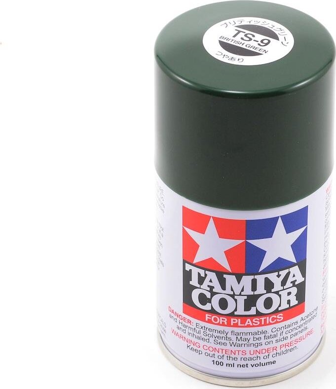 Tamiya Color TS-9 Racing Green Spray Paint works well on wood, styrofoam and most common model plastics. Paint is a synthetic lacquer and can holds enough paint to cover 2 or 3 standard car models. Ages 14 and up. Made in Japan. 100 ml (3.38 ounce) spray can. ATTENTION: This product contains chemicals known to the State of California to cause cancer, birth defecTS- or other reproductive harm.