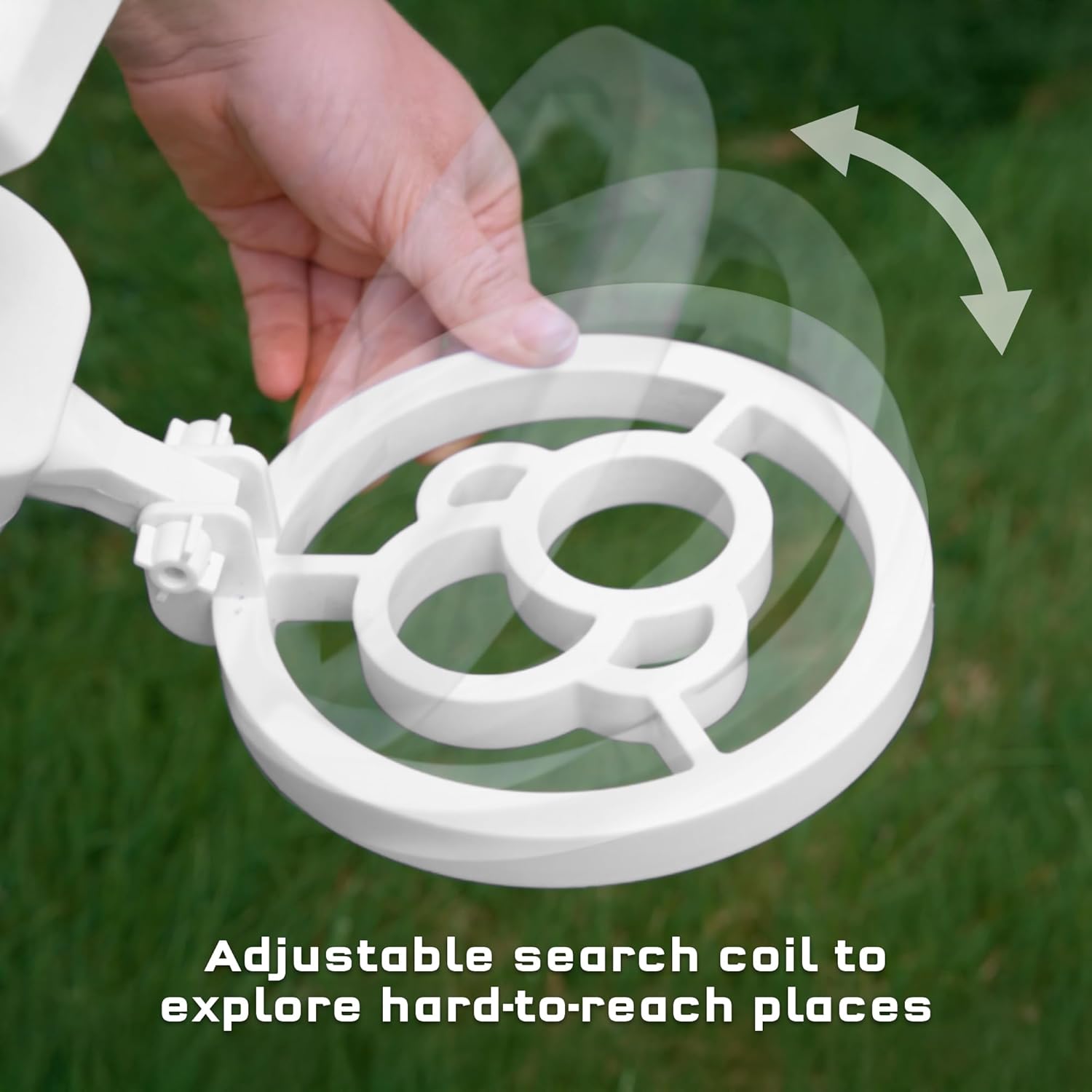 Let the treasure hunting begin! Use the Thames & Kosmos Metal Detector to detect metal objects â like gold, silver, iron, copper, and more â that are buried up to six inches deep in sand, dirt, or grass. The integrated digital display provides visual feedback as you home in on a metal object and emits a clear âbeepâ when you find your mark. Quickly and easily adjust the angle of the metal detector to explore between rocks, under bushes, and other hard-to-reach places. With two handles of different lengths and a lightweight design, this is the perfect exploration tool for kids (and adults!) of all ages.
