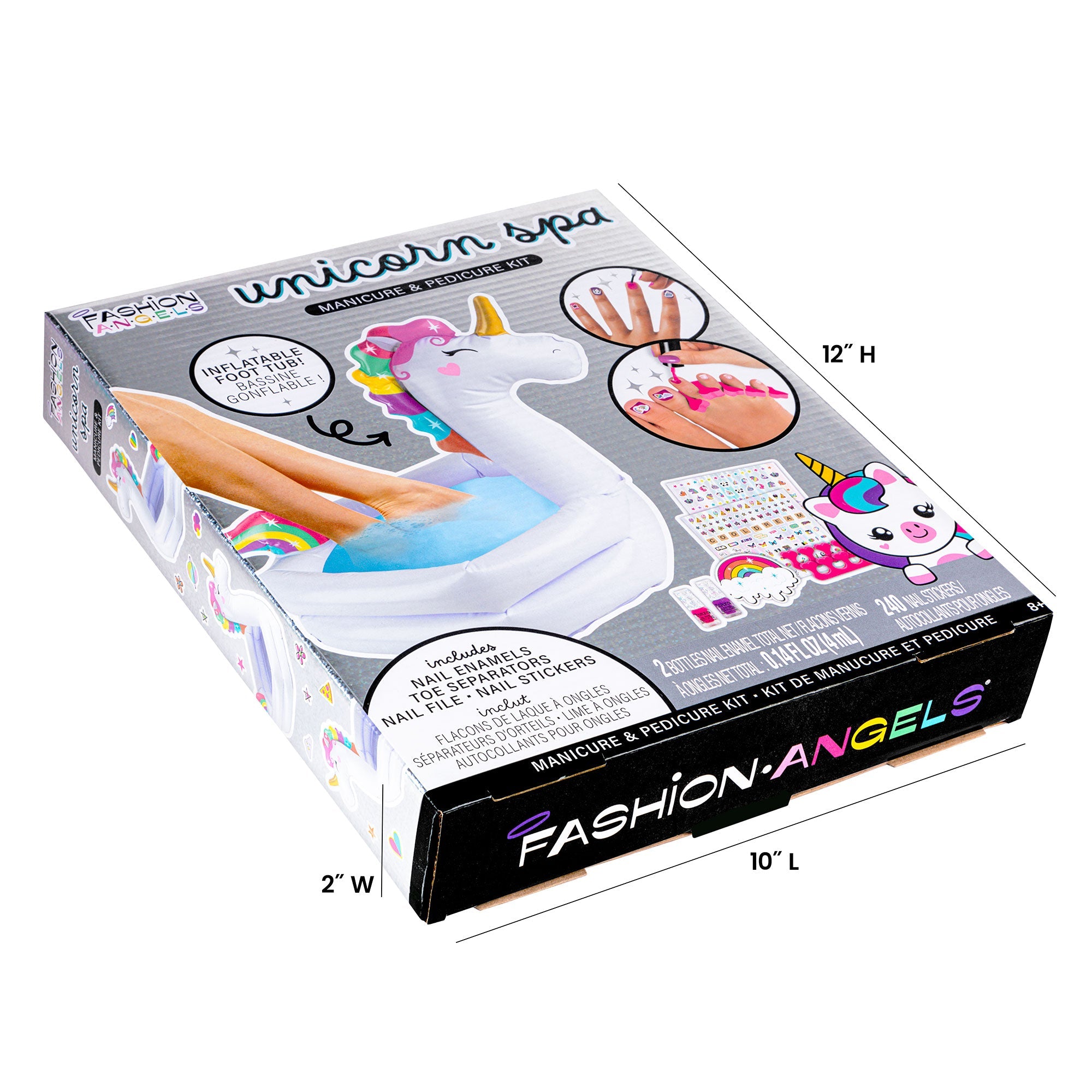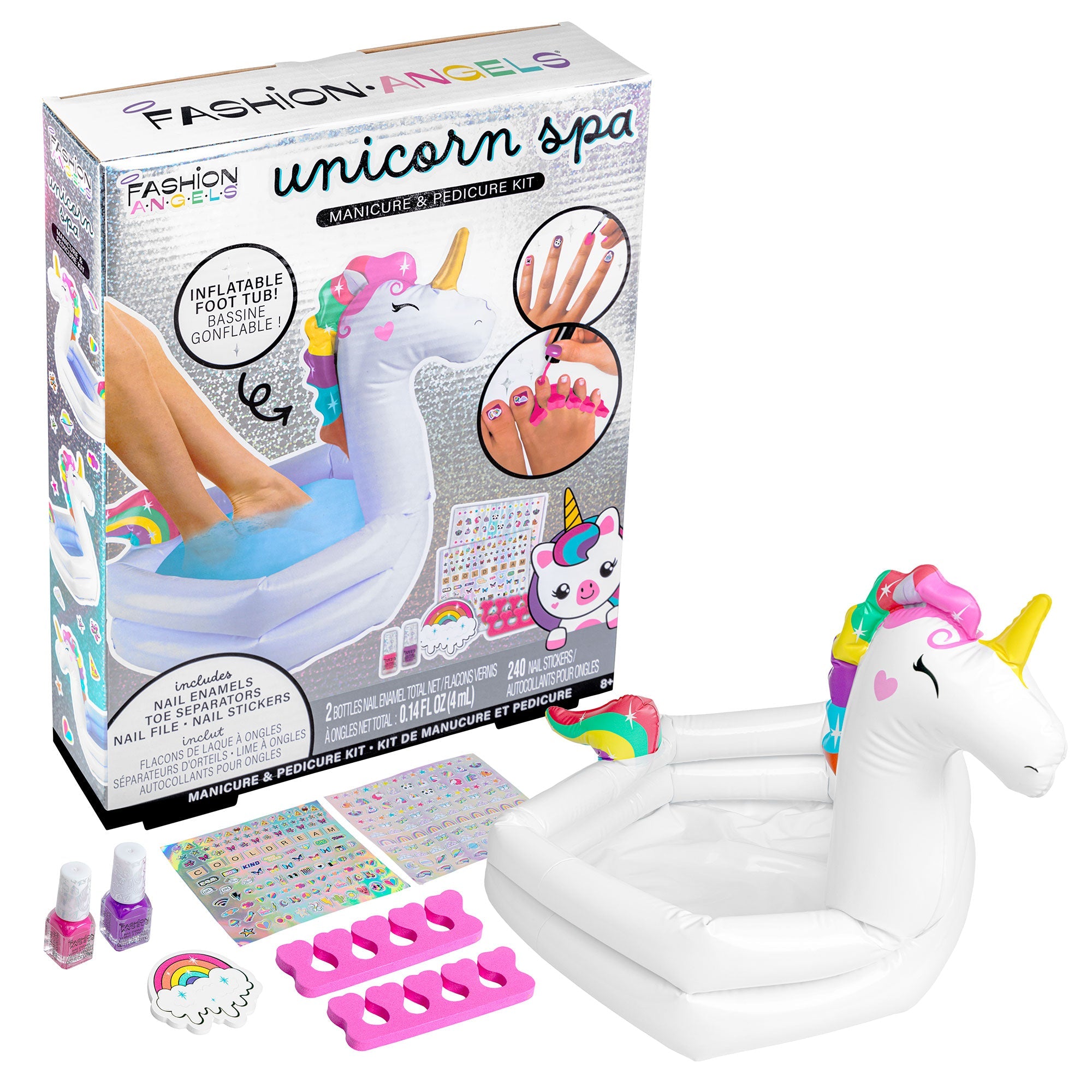 • UNLEASH THE MAGIC: Indulge in a relaxing foot soak in the included inflatable unicorn foot tub, shape and file your nails with unicorn-themed tools, and add a splash of color with sparkling nail polish, finally complete your spa day with unicorn decals for a magical look